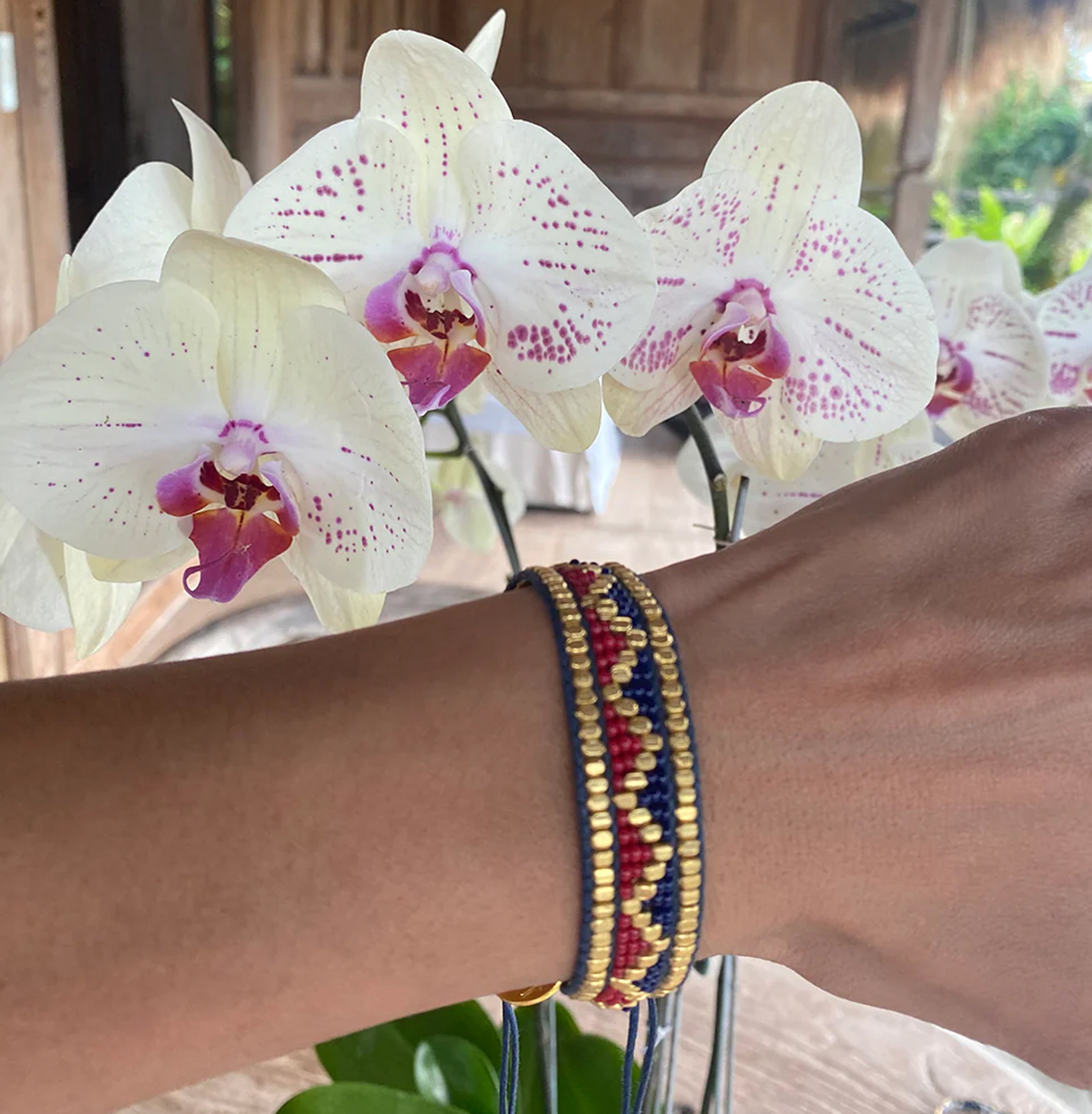 TAJ BEADED BRACELET - NAVY BLUE & RED