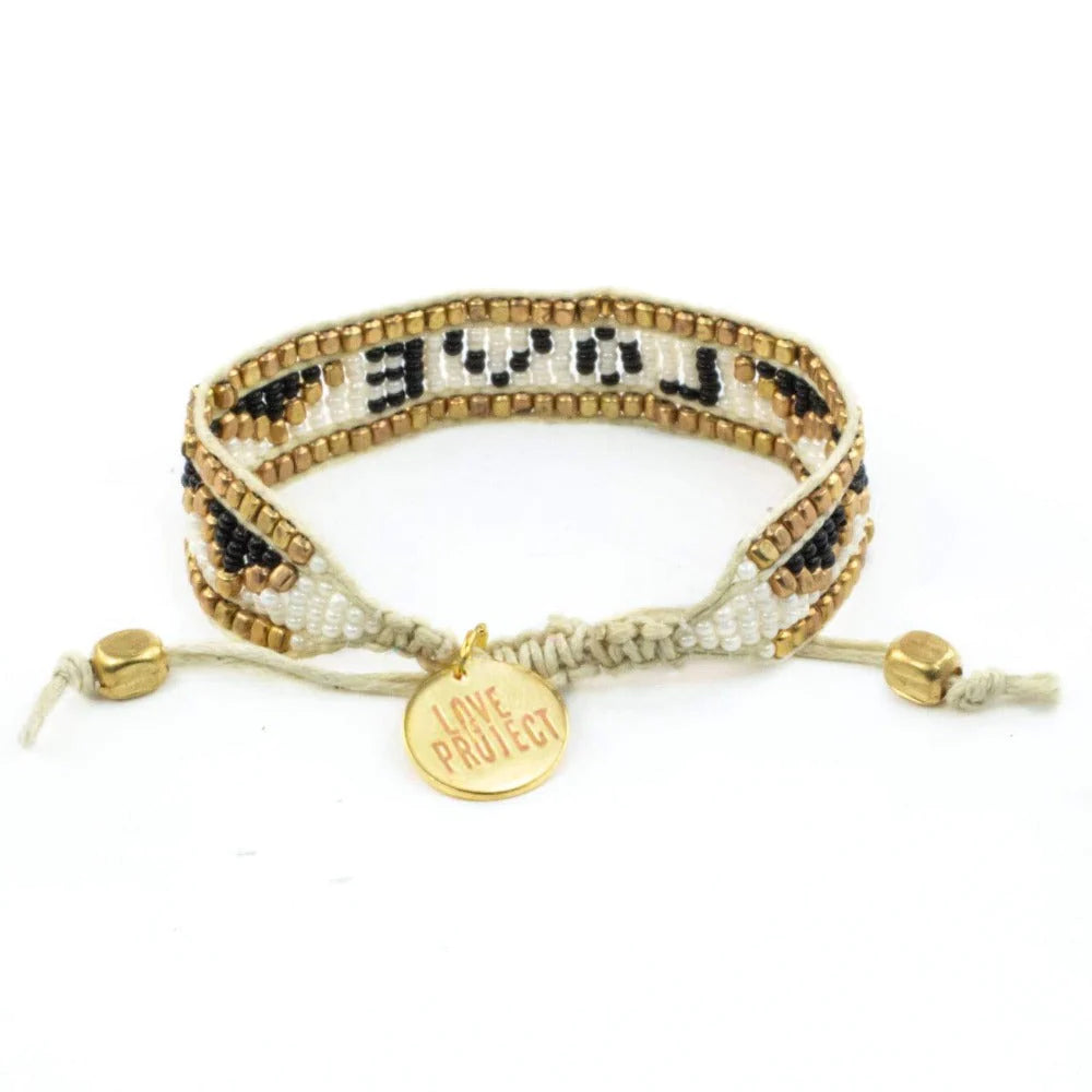 • Handmade with LOVE in India. • Comes with a protective cloth pouch, gift tag & sticker • 100% waterproof • adjustable length from 6-10 inches. diameter 2-3.5 inches, width 1" • Material - metallic beads - a matte antique finish not glossy brass tag • every bracelet is unique & hand-made therefore a slight variation in color combination may occur.